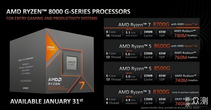 21世紀之前,由於主板上的集成度低,因此我們裝機幾乎是一個功能一個板卡,負責顯示的2D顯示卡(1998年之後才開始普及3D加速卡)、負責聲音的有聲卡、負責撥號上網的要有moden(也就是俗稱的貓,調製解調器)、要組網得買網卡……….更早期的機器,還有VCD硬件解碼卡;遠古時代甚至是COM口、IDE硬盤接口都要有專門的板卡。現在大部分北橋功能和部分南橋都集成到CPU裡面,傳輸速度增快,由CPU直接調動更多的資源,更重要的是配備核顯的CPU越來越多,無論從性能、兼容性都遠非以前主板集成顯卡可比。對於一般家用用戶來說,獨顯不一定是第一選擇,尤其是現在隨著AI熱潮,中高端顯卡都出現溢價的大環境下面。 1、 CPU市面上的CPU裡面,Intel處理器基本上是標配核顯的,除了部分後綴帶F(非核顯)或者KF(可超頻無核顯)外。Intel的核顯基本上是白送的,畢竟性能有限。AMD的話,7000系列處理器之前,後綴帶G的才是帶核顯的。不過AMD帶的核顯性能確實挺強的,無論是玩網遊、電競類型遊戲都有一戰之力。